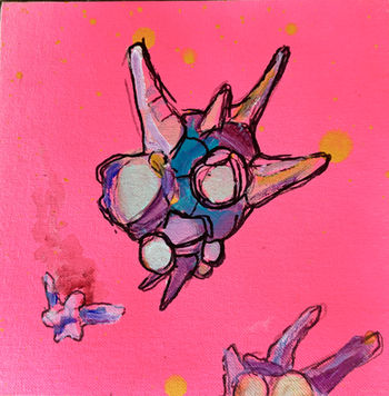 In preparation for the 40th Artscape in Baltimore, MD, I created a series of mall works in Acrylic. Mostly abstract, but the scenes, characters, and entities that emerged (and emerge still), provide endless amusement.